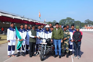 आगरा में सीमा सुरक्षा बल की जाँबाज टीम ने रचा इतिहास बनाये 04 नये विश्व कीर्तिमान सीमा सुरक्षा बल की जाँबाज टीम ने विजय दिवस पर नये विश्व कीर्तिमान बनाने की श्रृंखला शुरू की थी। जाँबाज टीम के टीम कप्तान इंस्पेक्टर अवधेश कुमार सिंह ने रॉयल एनफील्ड 350 सीसी आगरा रॉयल्स से खरीदी गई । मोटर साइकिल पर लगा 12 फिट 10 इंच के पोल पर खड़े होकर चलती हुई मोटर साइकिल कि उल्टी दिशा में खड़े होकर लगातार 5 घंटे 26 मिनट 03 सेकंड लगातार मोटर साइकिल चलाकर 174.1 किलोमीटर दूरी तय करके एक नया विश्व कीर्तिमान स्थापित किया। सीमा सुरक्षा बल की जाँबाज मोटरसाइकिल टीम के आरक्षक प्रसनजीत एन आर देव ने रॉयल एनफील्ड 350 सी सी मोटरसाइकिल कि फ्यूल टंकी पर खड़े होकर लगातार 01 घंटा 40 मिनट 06 सेकंड मोटरसाइकिल चलाकर 59.1 किलोमीटर दूरी तय करके एक नया विश्व कीर्तिमान स्थापित किया। यह इवेंट टोल प्लाजा नंबर 21 आगरा लखनऊ एक्सप्रेसवे पर मिस्टर मनोज जादौन द्वारा भव्य स्वागत किया गया इंस्पेक्टर टीम कप्तान अवधेश कुमार सिंह और इंस्पेक्टर उप कप्तान विश्वजीत भाटिया आपस में सगे भाई हैं ये गोरखपुर के रहने वाले है। एक ही परिवार के दो सगे भाई ने अब तक 03 विश्व कीर्तिमान बनाया है अद्भुत प्रदर्शन ओर हैरतंगेज कर्तव्य को याद करती है और उनसे प्रेरित होकर आगे बढ़ रही है